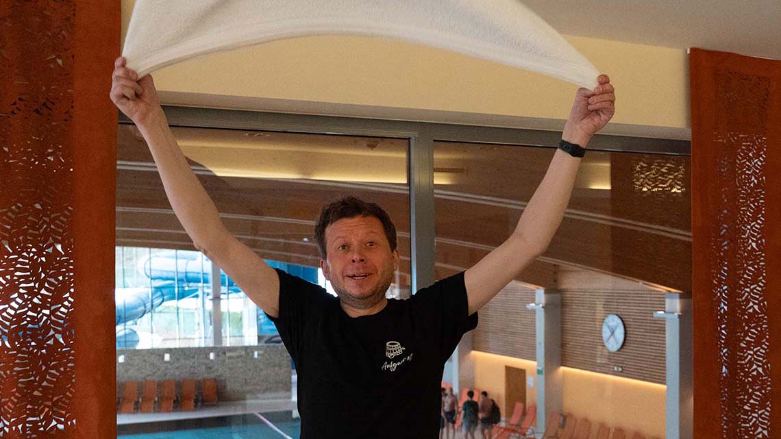 Ich bin hauptberuflich Theoretischer Quantenphysiker und forsche und lehre an der Universität Innsbruck. Die Sauna und das Ritual des Aufgusses haben mich bereits im späten Teenageralter fasziniert und ich bin seit fast 25 Jahren regelmäßiger Saunagast. Nach Corona wollte ich mehr Zeit in Gesundheit und Ausgleich investieren und entschloss mich daher dazu, meine bis dahin auf Hobbyniveau durchgeführte Aufgusstätigkeit zu professionalisieren.