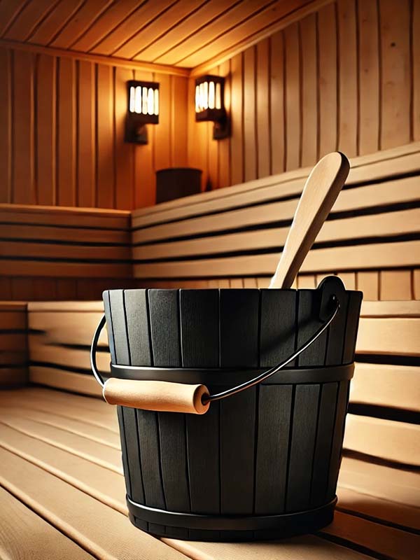 Es mag bizarr erscheinen, aber ich habe meinen eigenen Aufgusskübel. Warum? Für die 100% naturreinen ätherischen Öle und Hydrolate ist es mir sehr wichtig, auch ausschließlich sauberes Wasser für meine Aufgüsse zu verwenden. Ich bin, wie wir alle, Gast der Sauna und die Standard-Kübel werden auch von Anderen benutzt. Ich finde diese dann oft noch halbvoll mit in Wasser gelösten synthetischen Aufgusskonzentraten vor und gerade die Kübel mit einem Plastikmantel innen lassen sich nur sehr schwer bis gar nicht vollständig ausspülen. Nachdem wir alle den Wasserdampf des Aufgusswassers mit einatmen, war mein eigener Kübel aus beschichtetem Aluminium die einzig logische Konsequenz für mich - in den kommt nichts anderes als reines Wasser.